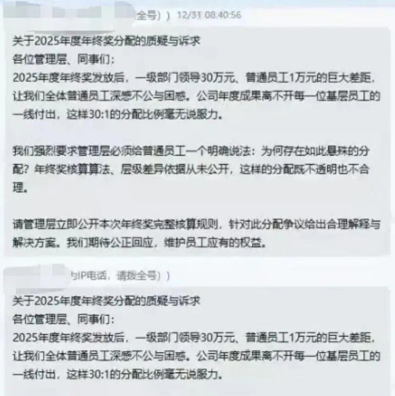 “领导年终奖30万,普通员工1万”,期货公司员工称因降薪讨说法遭袭