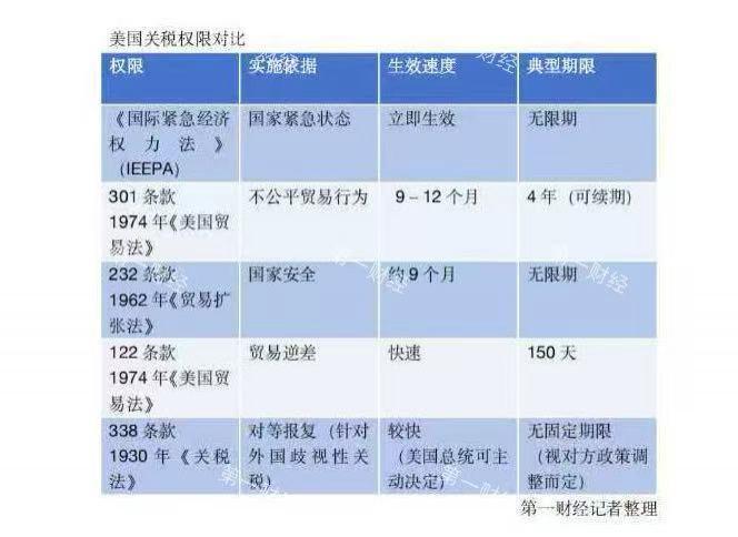 英国杜伦大学法学院副院长、跨国法教授兼全球政策研究所联合主任杜明对第一财经记者表示,第 122 条等可以临时用一下,其他还可以使用的包括 "232 调查 ","301 调查 " 和 1930 年《关税法》第 338 条。