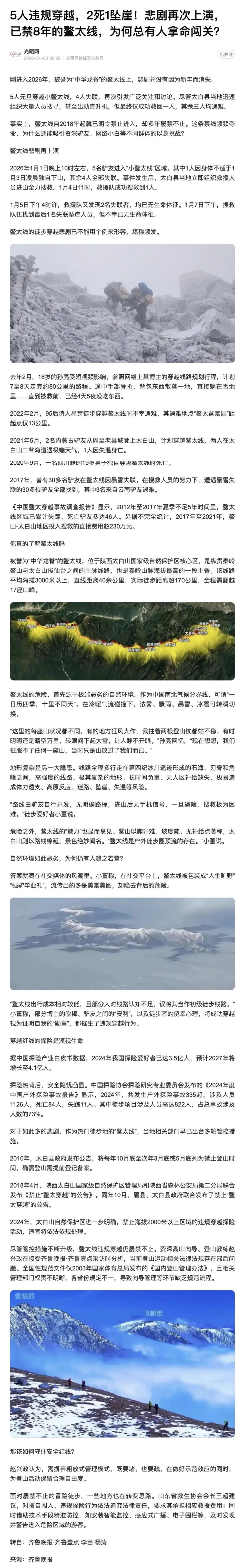 刚 2026 年 1 月,鳌太线又有非法穿越的人出事儿了。