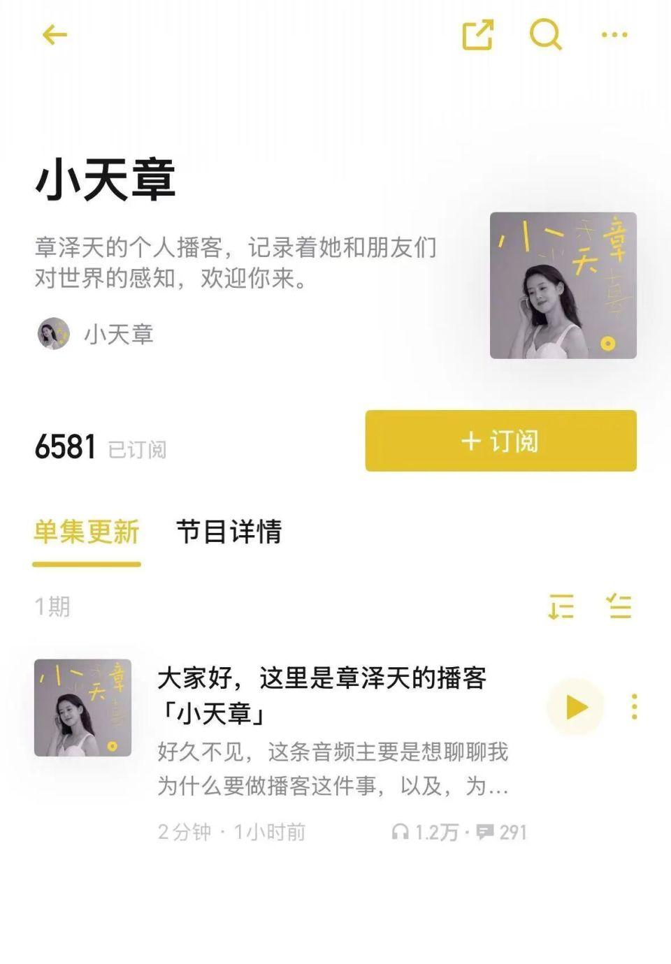 章泽天开播客,取名为“小天章”,一小时收听量破万