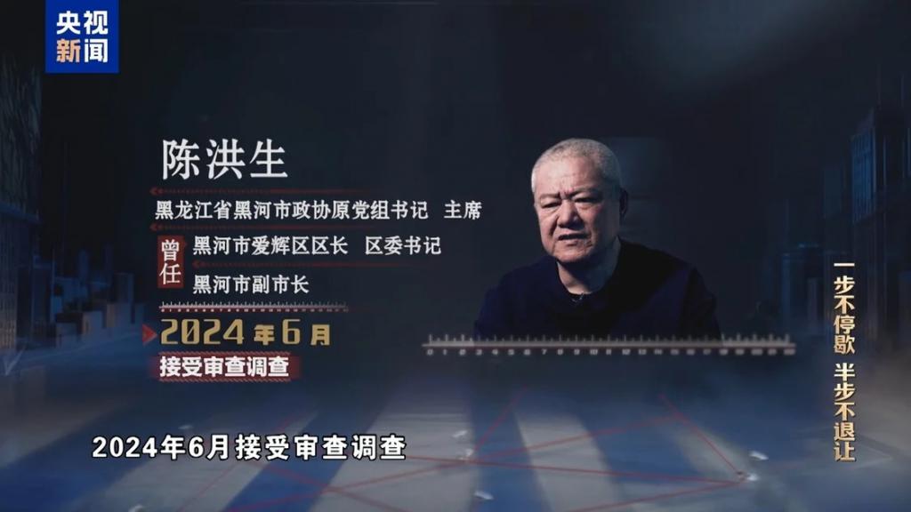 陈洪生,黑龙江省黑河市政协原党组书记、主席,曾任黑河市爱辉区区长、区委书记,黑河市副市长等职务。2024 年 6 月接受审查调查。