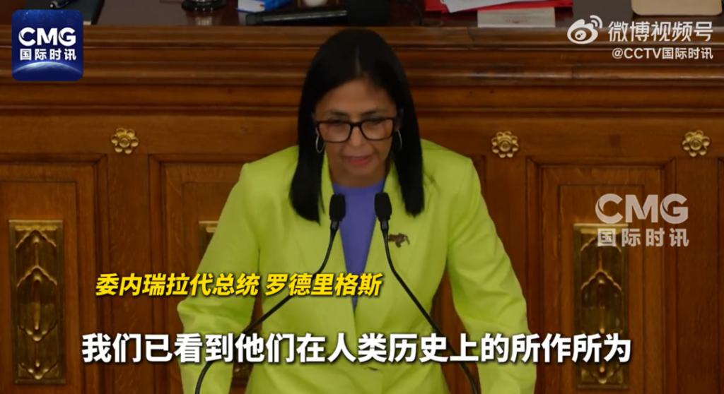 罗德里格斯说," 美国是一个致命的核大国,我们已看到他们在人类历史上的所作所为。我们清楚,也并不害怕通过政治对话、以适当方式同他们进行外交交涉,一劳永逸地解决历史矛盾。如今,整个委内瑞拉都面临威胁,因此我呼吁全国团结,以主权为优先,打一场外交战。"