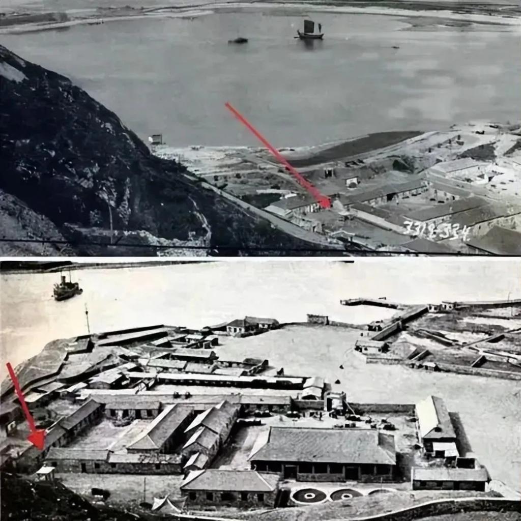 20 世纪初,俄国人、日本人拍摄旅顺照片中的唐鸿胪井碑及碑亭(红色箭头所指向)