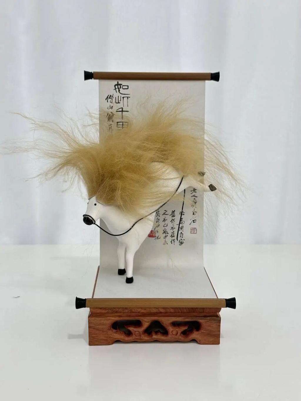 工作室负责人冯先生告诉记者,别看这只小马形状 " 潦草 ",实际上它的灵感来自于齐白石的画作《如此千里》,设计师将画作中的水墨线条和软陶工艺结合起来,才设计出了这款 " 马彪彪 "。