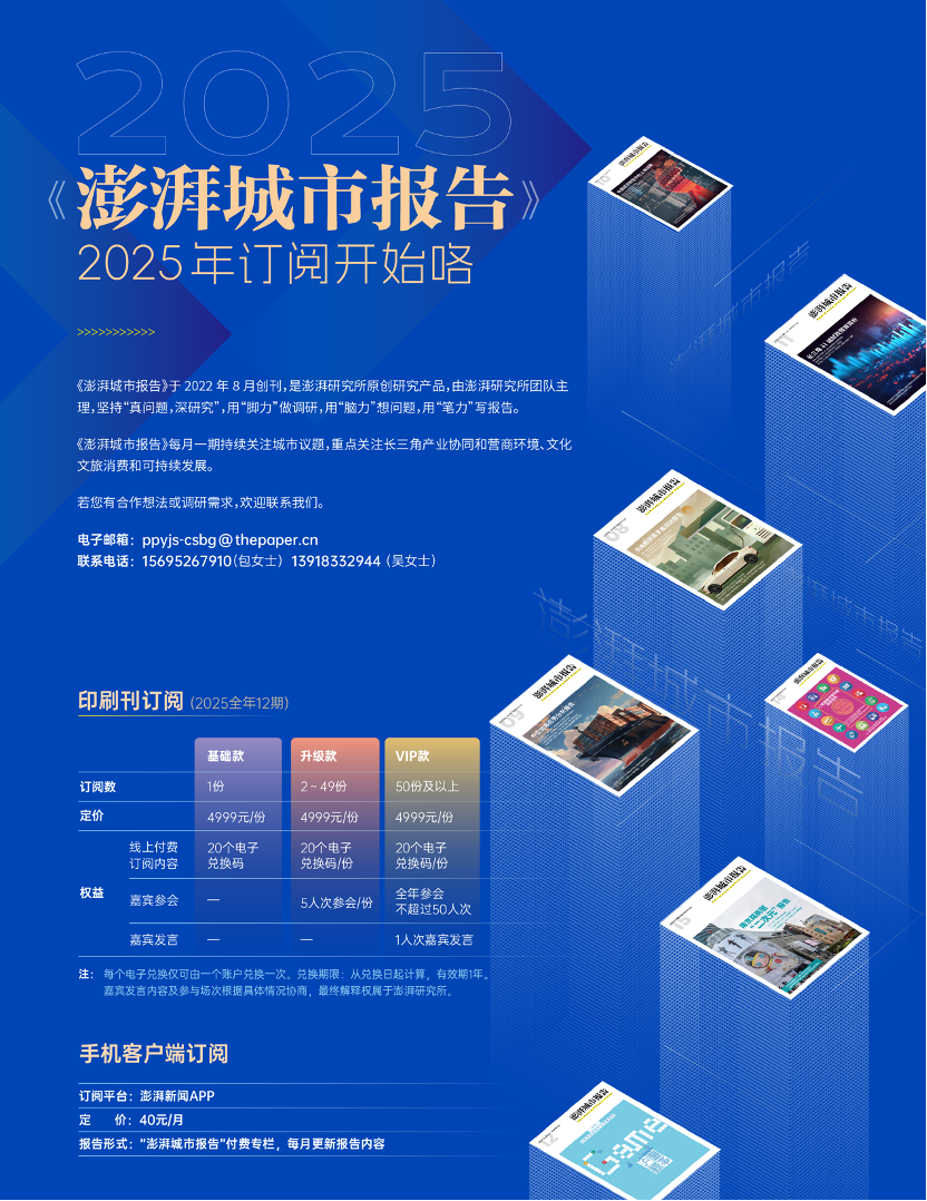 从2025年开始,《澎湃城市报告》开启付费订阅,分为印刷版订阅与客户端订阅两种。订阅详情请见海报。