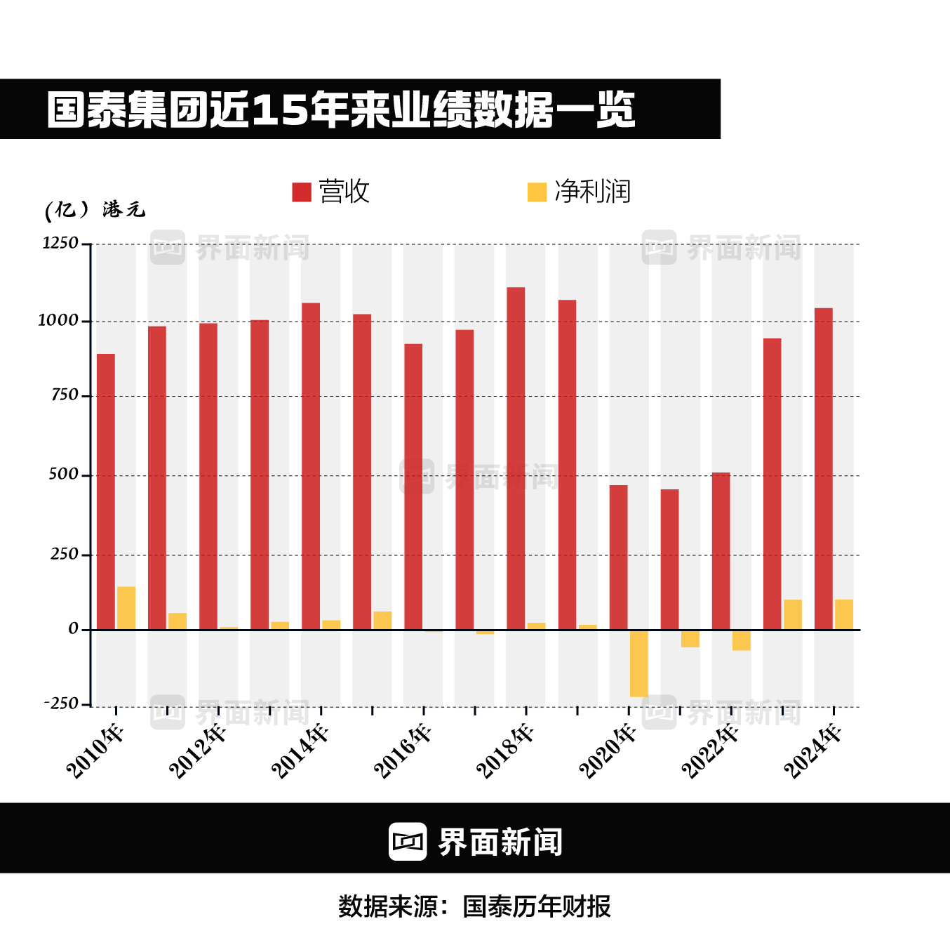 财务数据显示,2024年国泰集团实现收益1043.71亿港元,同比提升10.5%,重回千亿级营收;录得应占溢利98.88亿港元,同比增加1%,达到2010年至今第二高的水平。