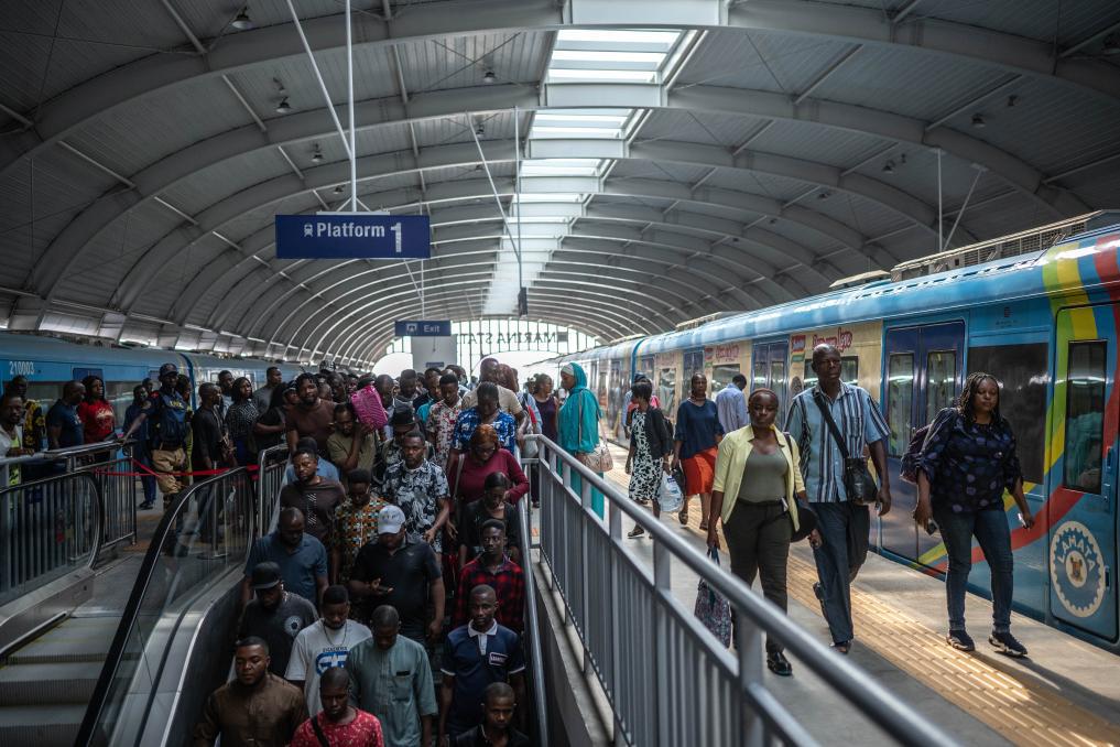 2024 年 12 月 2 日,在尼日利亚拉各斯,乘客走在轻轨蓝线的站台上。拉各斯轻轨蓝线是西非地区首条由中国企业自主设计、建造、施工、运营的电气化城市轨道交通项目。新华社记者 王冠森 摄