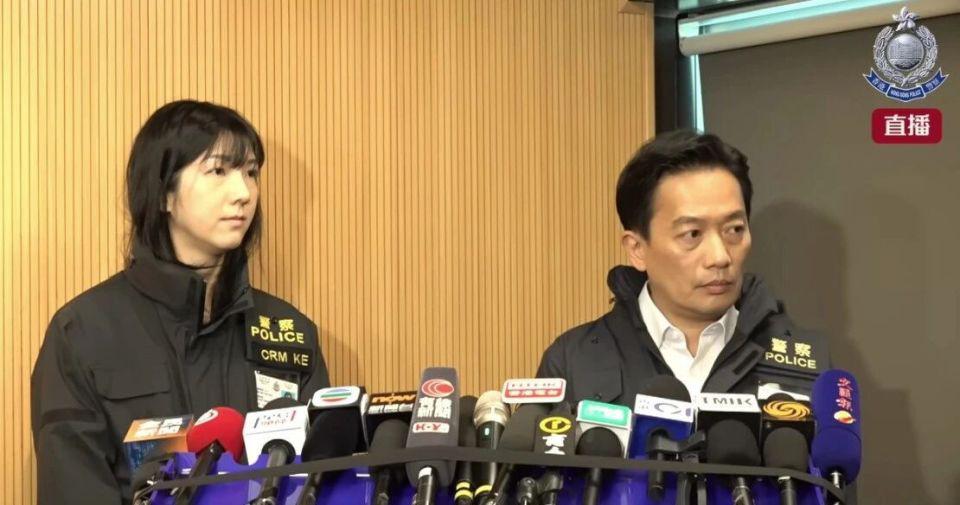 聚光灯下,负责通报案情的东九龙总区重案组第一队主管总督察邬凯宁,一身深色警服,一头利落短发,吐字清晰,语速沉稳,逐条介绍案情细节。