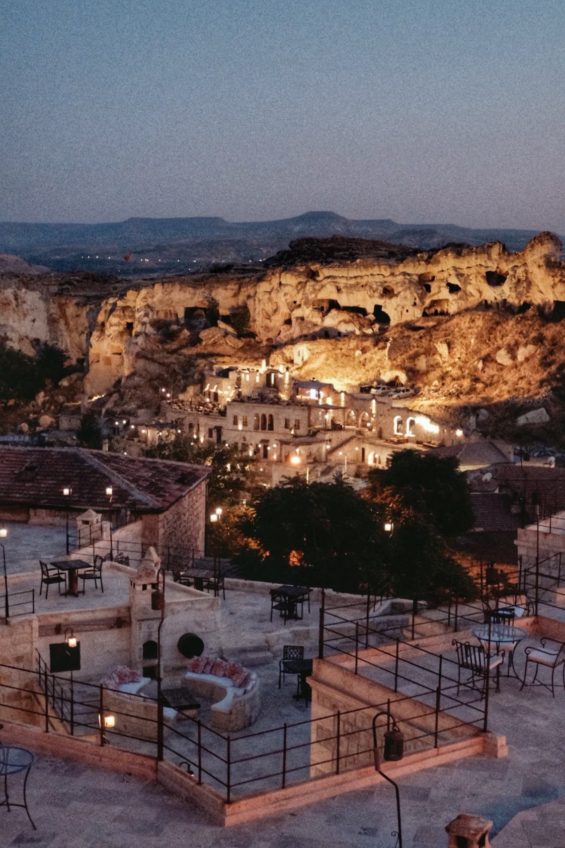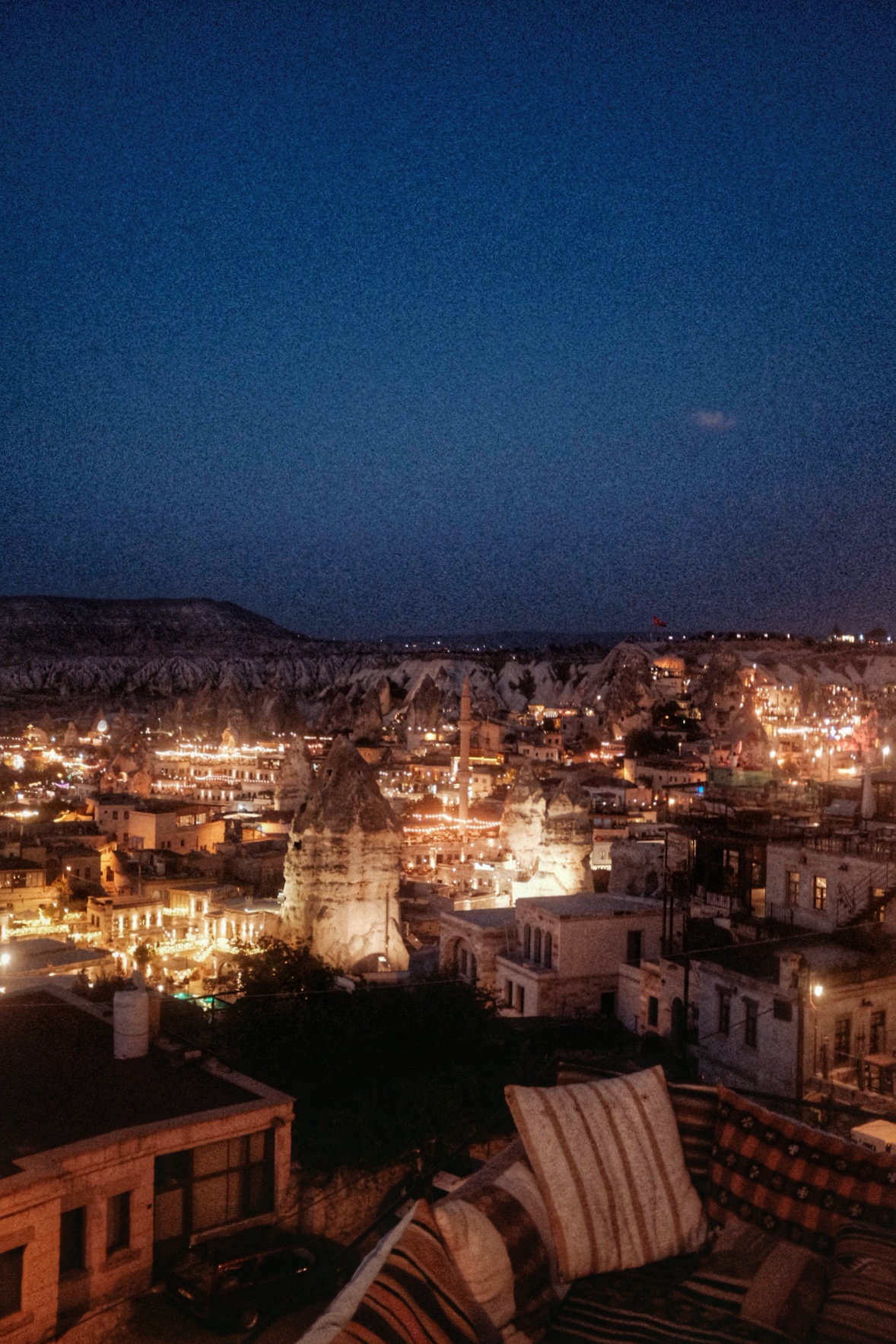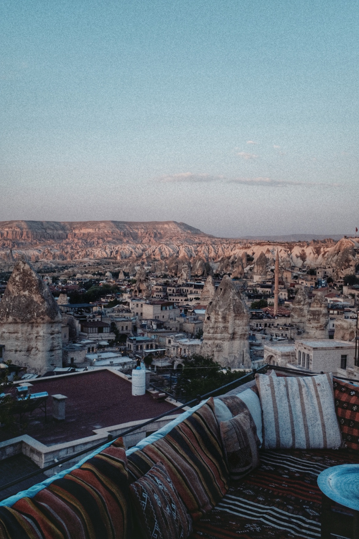 晚饭选在了当地一个著名的网红餐厅:Veranda Rooftop Cappadocia,餐厅的一处打卡点是众多ins达人的固定机位,落日之时亦或落日之后,在卡帕多西亚最繁华的小镇中心,俯瞰城镇,远眺山脉。