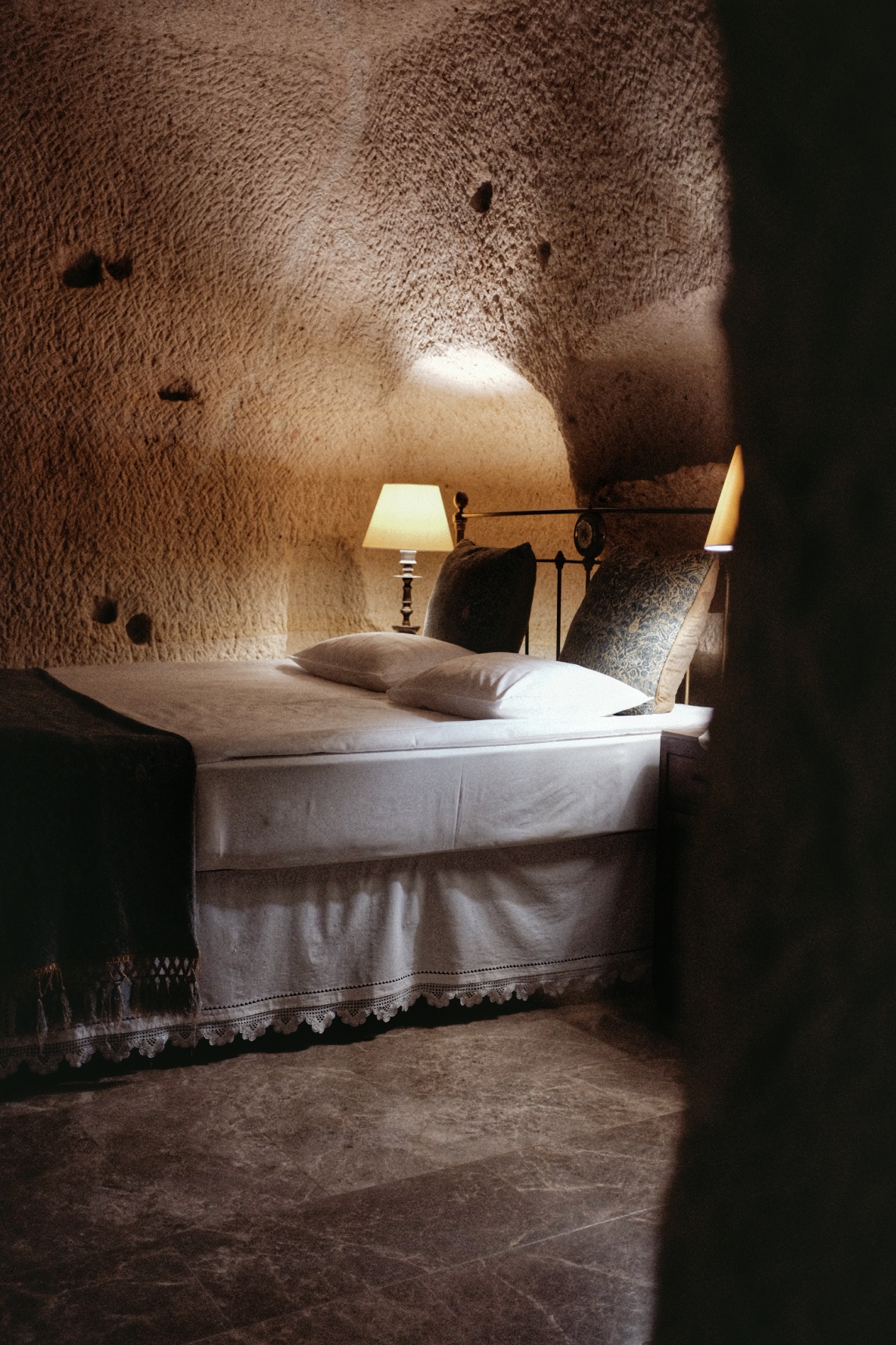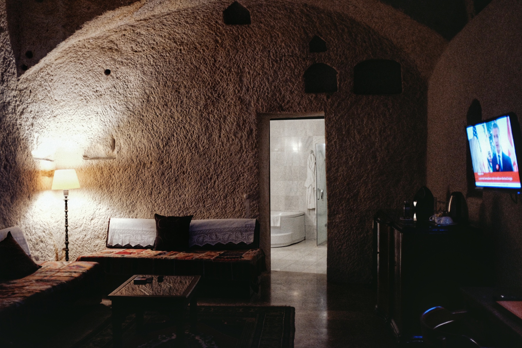 从伊斯坦布尔到卡帕多西亚(开塞利)大约只要一个半小时航程,内陆航线肯定还是首选土耳其航空,到达开塞利后驱车大约一小时就可以到达很多网红城镇。我们在傍晚来到要入住的Yunak Evleri 洞穴酒店,这是该区域众多洞穴酒店中的一家,我很难承认住在这里是奢华且舒适的,但在这样一个远离现代社会的火山沉积侵蚀地貌中,选择洞穴酒店本身就是一次关于“居住方式”的回溯。住宿在这里意味着庇护。入夜后,一切静默,你会重新找到时间的重量。