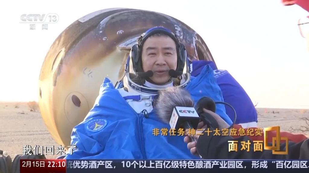 陈冬:感觉回家真是太快了,恨不得能够再缩短一点。因为原来的时候,需要我们再进一次轨道舱,再做一些设置,现在程序缩短之后,我们不需要再进入轨道舱了,直接关门之后,关返回舱的舱门之后,直接到落地,所以就感觉流程很顺畅,感觉回家比以前快了,就是开心,就是高兴。在返回舱里面虽然空间很挤,但是心情很愉悦,总是看时间,快了,又快了点,一下落地了。