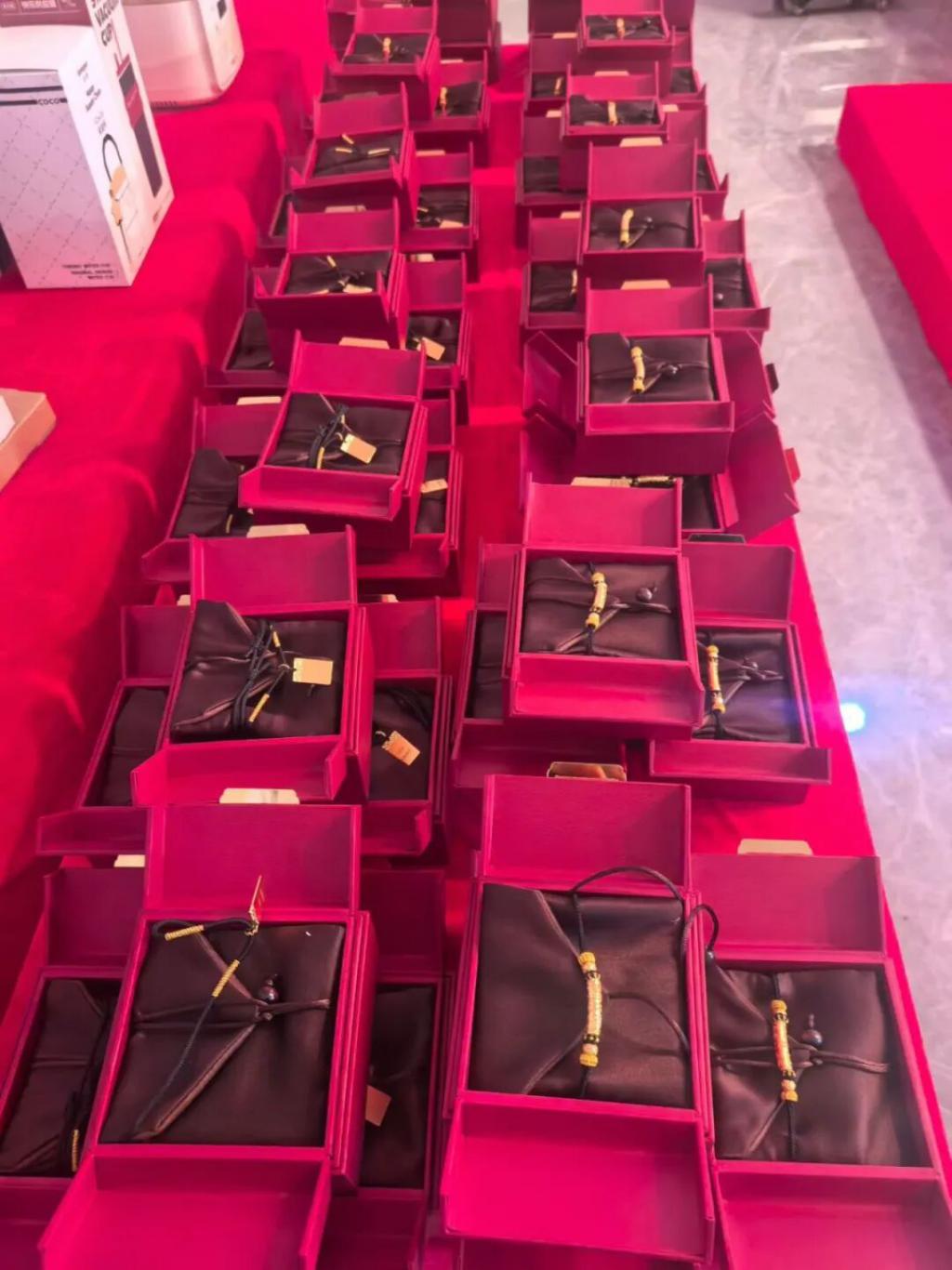 2022 年入职大地密码公司的张女士告诉记者,她也领到了一份 3 克黄金手串,在现场感到很激动、惊喜。张女士是濮阳本地人,几年前从国外留学归来,在深圳工作了一段时间后,本计划回乡创业,偶然的机会加入大地密码公司,便一直工作到了现在。
