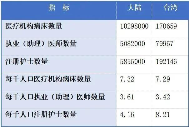 表 5 2024 年大陆和台湾人均医疗资源对比