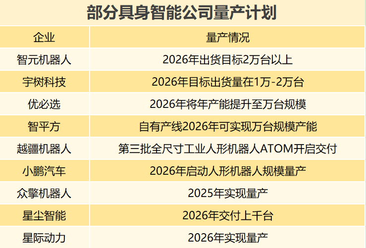 不过,人形机器人现时仍处于商业化前期,仅部分头部企业迈入小规模量产阶段。TrendForce集邦咨询预估,2026年将是人形机器人迈向商业化的关键年,全球出货量可望突破5万台。目前,仅智元、宇树、优必选、智平方几家公司提出万级规模产能。