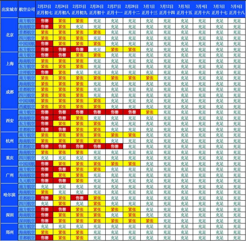 受此影响," 天价 " 机票价格再次显现,2 月 22 日至 23 日,三亚飞北京、上海的直飞航班经济舱全部售罄,公务舱票价逼近万元;三亚飞往深圳的直飞机票 2 月 24 日售价超 8000 元。这种 " 天价机票 " 现象,正是市场供需严重失衡的直接体现。