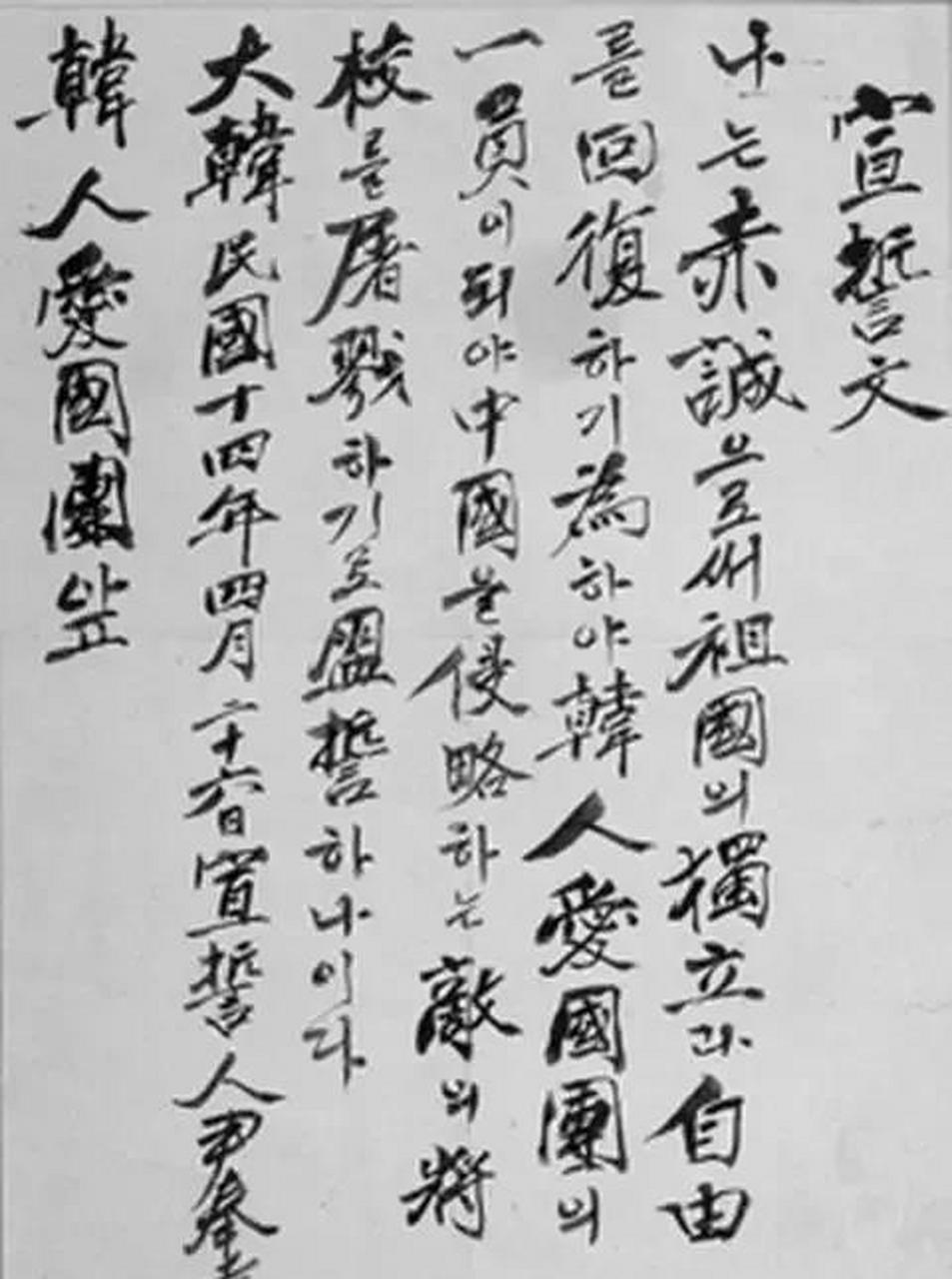 ▲尹奉吉和他的宣誓文