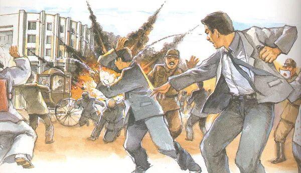 一声巨响,副车当即被炸翻,车夫当即被炸死,车上的人却幸免于难,而坐在前面马车上的裕仁天皇听到爆炸声后,惊慌失措,差一点摔出车外。