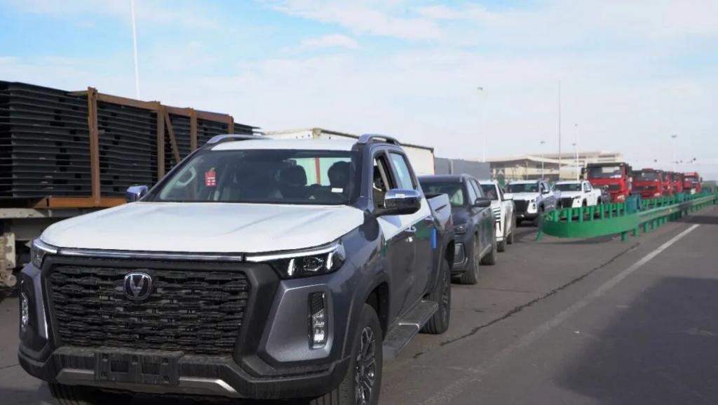 2 月 10 日,在霍尔果斯公路口岸,等待自驾出口的国产汽车排起长龙 / 新华社记者 张啸诚 摄