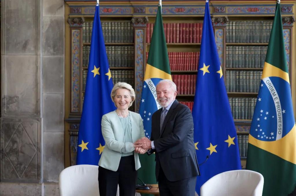 巴西总统卢拉 1 月 16 日在里约热内卢会晤欧盟委员会主席冯德莱恩时表示,南方共同市场与欧盟达成的自由贸易协定基于多边主义伙伴关系,有利于多边主义 / 新华社记者 周永穗 摄