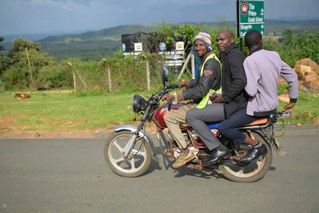 2 月 3 日,在肯尼亚西部的尼亚米拉郡,人们乘坐当地摩的 "Boda Boda" 行进在柏油乡村公路上 / 新华社记者 杨光 摄