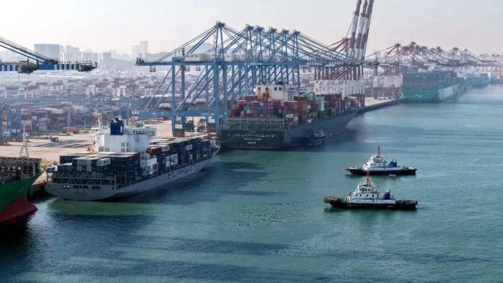港口的繁忙印证了中国出口的韧性。海关总署数据显示,去年中国进出口总值达到 45.47 万亿元人民币,其中出口 26.99 万亿元,增长 6.1%,贸易顺差创下历史新高。