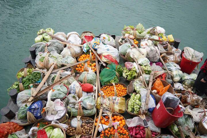 上船的背篓多了起来。村民们说说笑笑,拉着家常。互相交换自家种的蔬菜,分享卖菜经验。秦大益说,村里老人独自或老两口在家,因为这班船,他们有了寄托——隔三岔五去县城卖菜," 也不图赚钱,在家没人说话,坐船热闹 "。