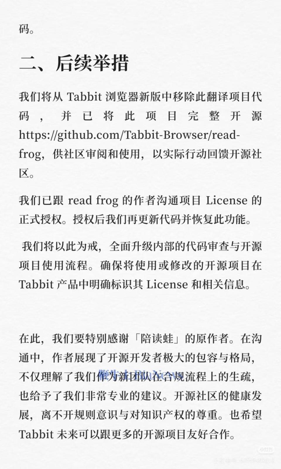 首页 > 科学 美团旗下AI浏览器回应抄袭:双方达成共识,移除涉事功能并将重新授权 3 月 3 日消息,近日,美团旗下光年之外(GN06)团队宣布,其全新产品 Tabbit AI 浏览器进入公测。产品发布后," 陪读蛙 " 作者在社交网络发文称 Tabbit AI 浏览器抄袭了自己的代码,并列出相关代码截图。今日,官方与陪读蛙发布联合声明,即关于 Tabbi 浏览器翻译插件开源合规事宜的说明与致谢。