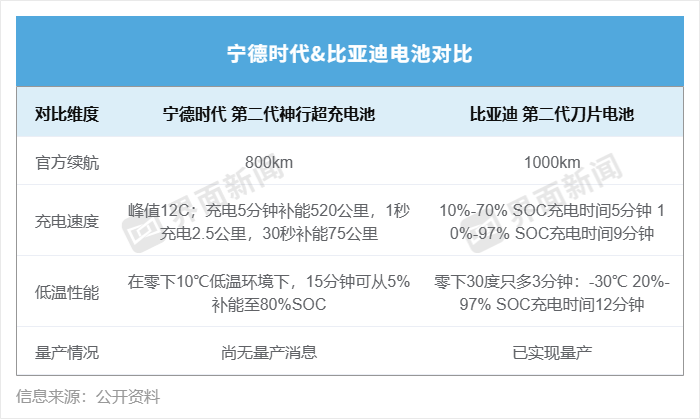 在各项核心性能上,比亚迪第二代刀片电池与宁德时代第二代神行超充电池的表现旗鼓相当。但两者在量产速度上存在差距。