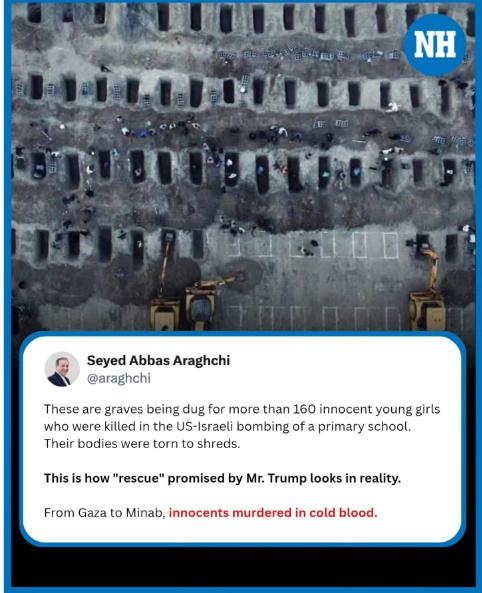 仅在伊朗南部米纳卜市一所小学,至少 165 人在袭击中遇难,其中大多只是 10 岁左右的小女孩。