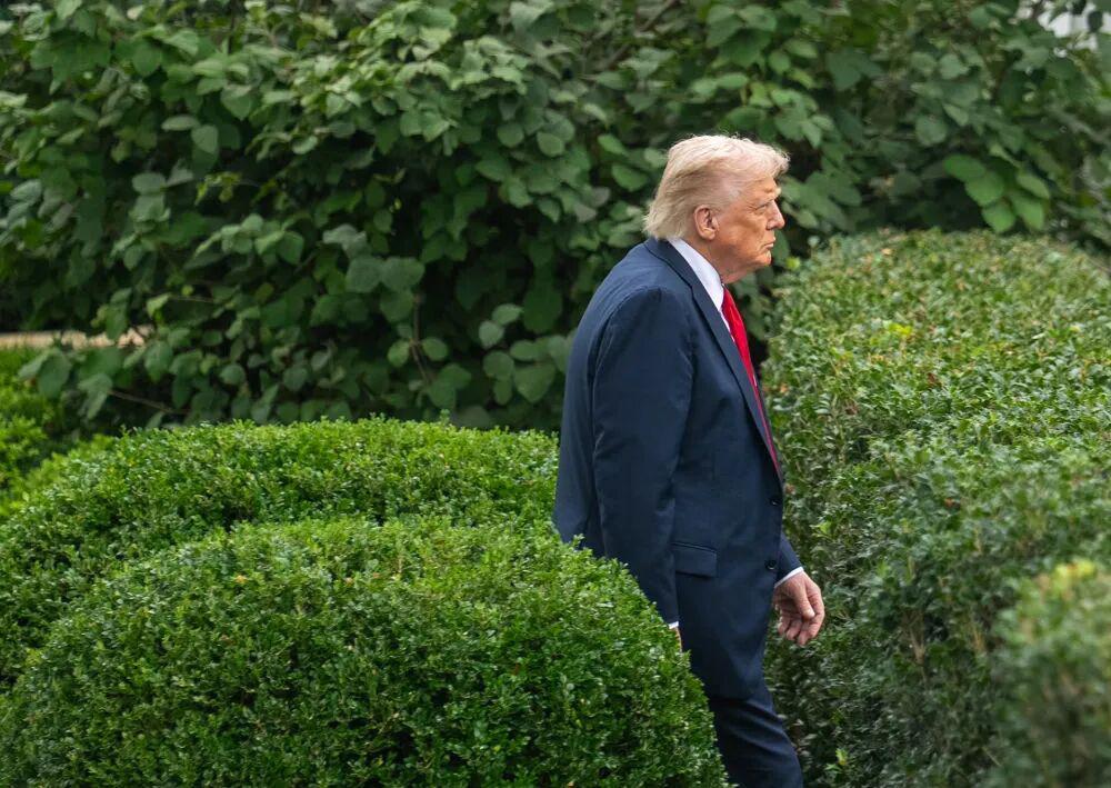 2025 年 9 月 30 日,在美国首都华盛顿白宫,美国总统特朗普走在白宫玫瑰园。新华社记者胡友松摄