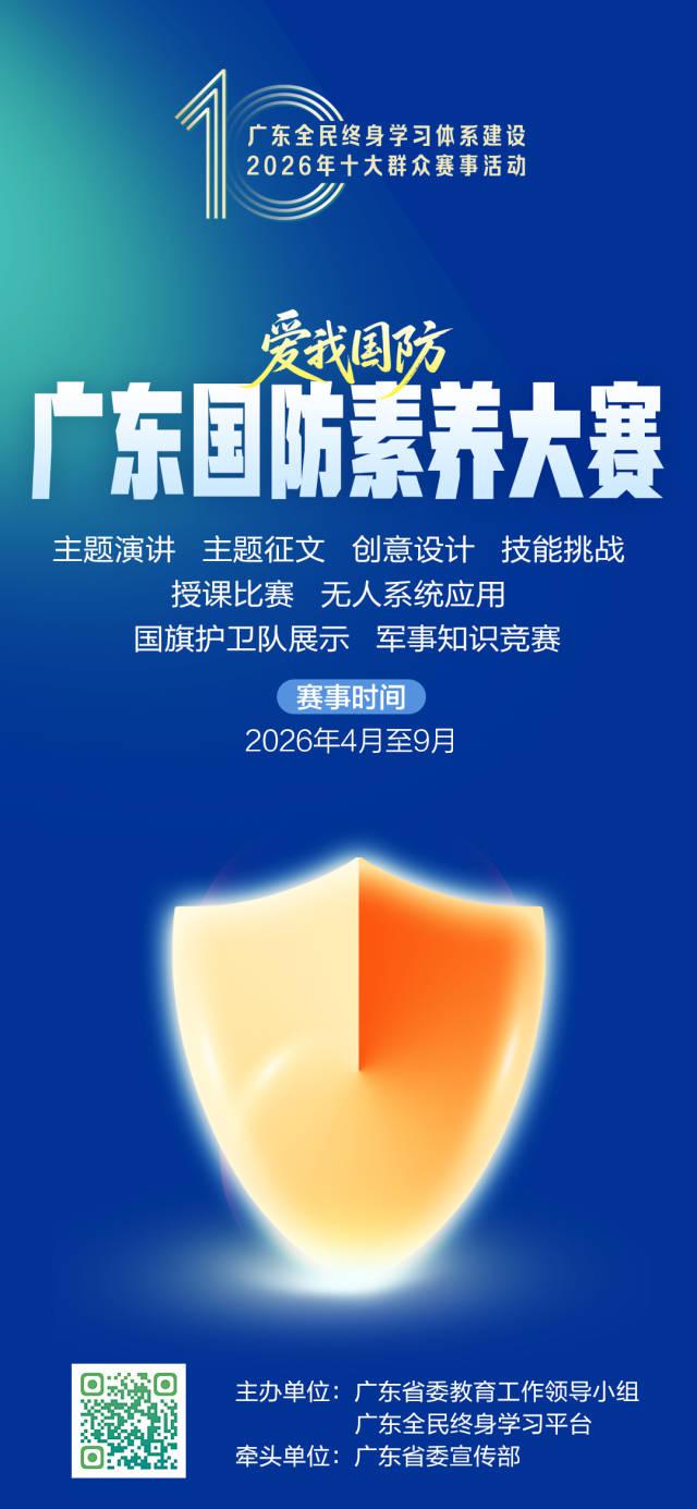 请登录广东全民终身学习平台 " 十大群众赛事活动 " 专区和南方 +、羊城派 " 广东国防素养大赛 " 专题报名。赛事报名、参与等事宜咨询,请联系:谢艺婷电话:020-87133533。