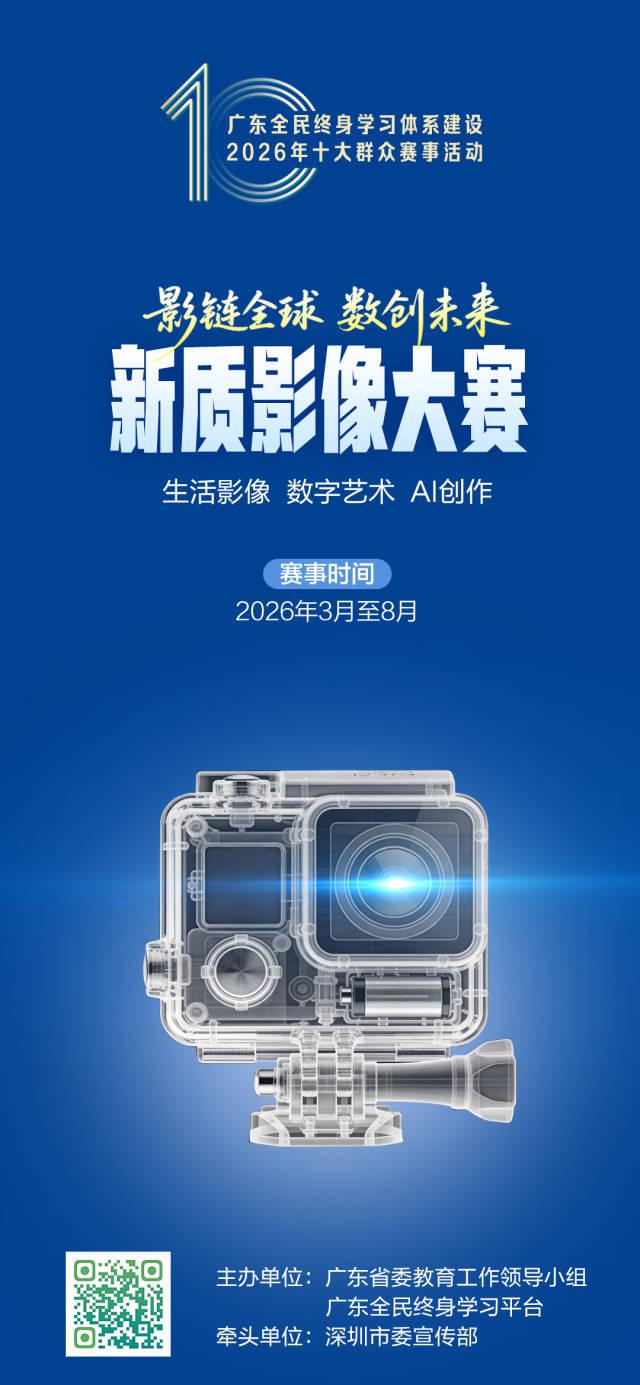 赛事的意义远不止于竞赛本身。十大群众赛事活动的举办,旨在以赛事活动为引擎激活全民终身学习体系——以赛促学,学以致用,用以促长。我们探索打通赛事活动牵引与学习赋能的良性循环,推动赛事活动成为动员社会参与、检验学习成果的理想平台,将每一次参与过程都转化为全民学习、终身学习的生动实践。在赛事中脱颖而出的优秀作品、人才,将被纳入广东全民终身学习平台的课程库与资源库。我们将通过不断优化学习生态与服务闭环,将人口优势持续转化为人力资本优势,为广东高质量发展提供坚实支撑和持久动力。