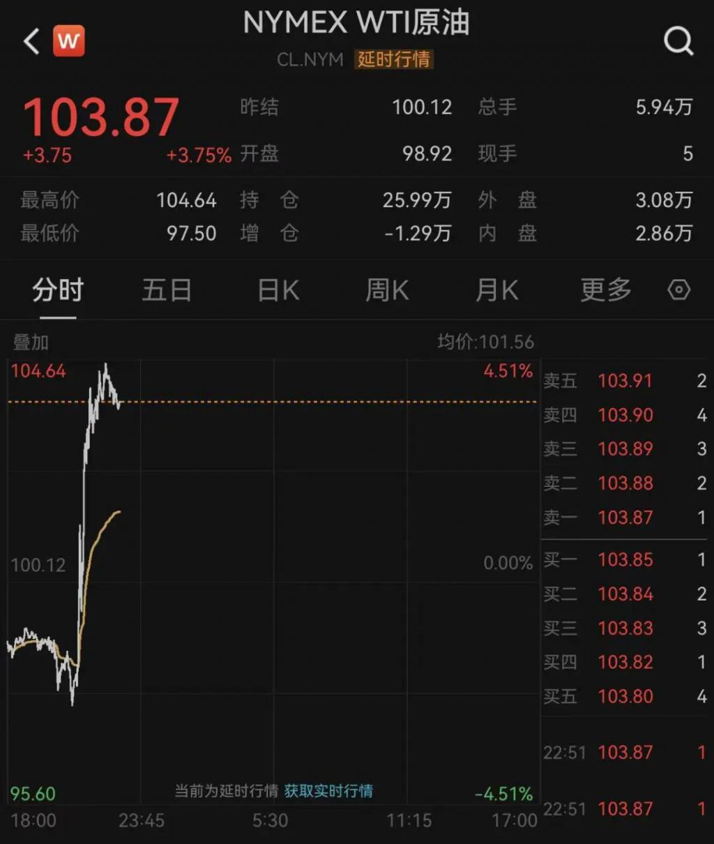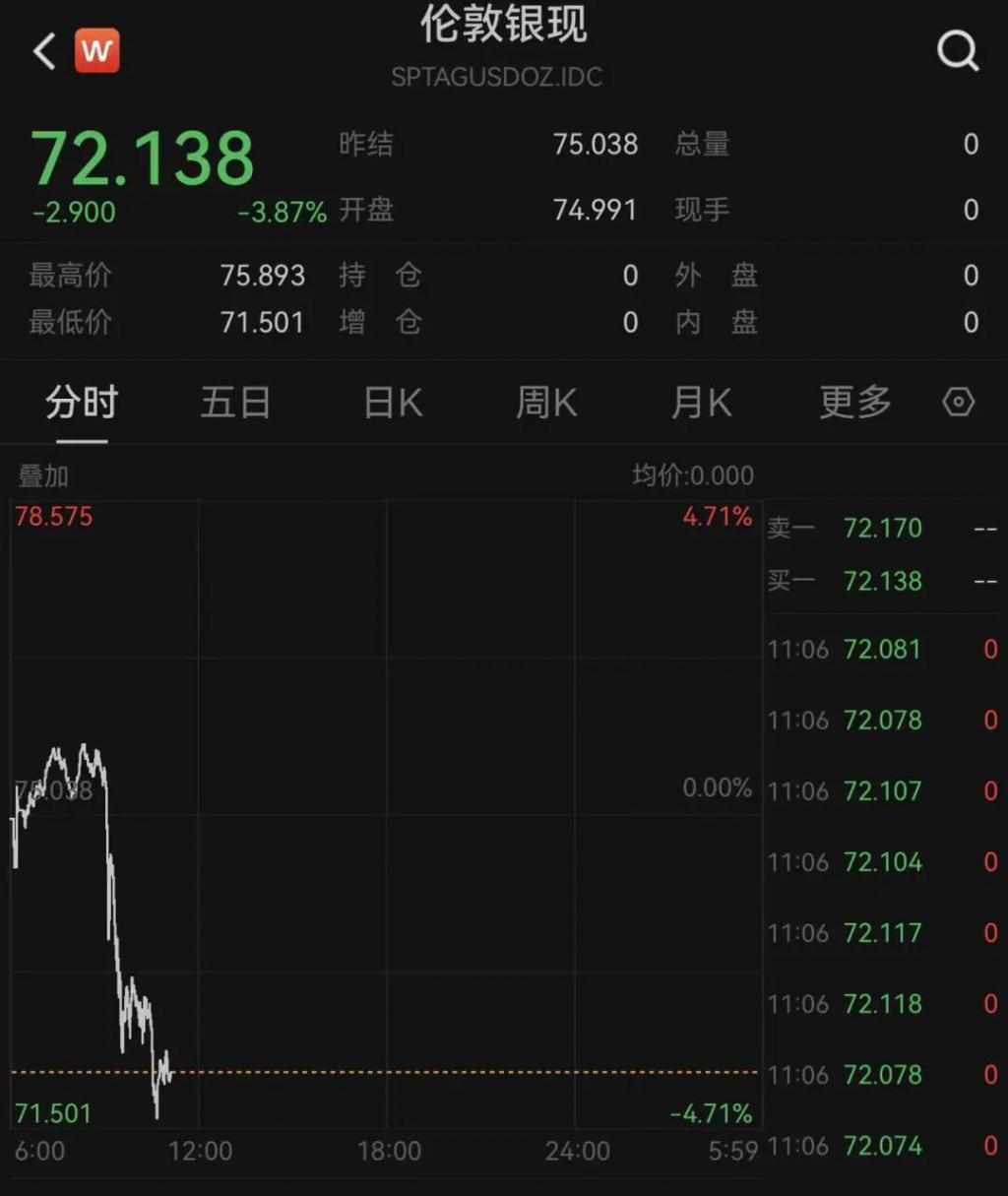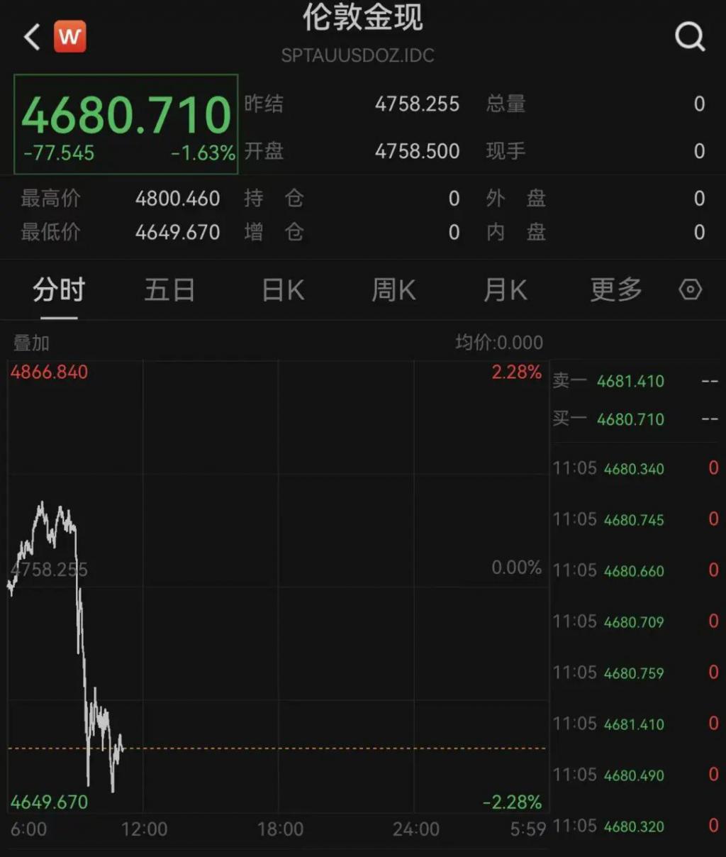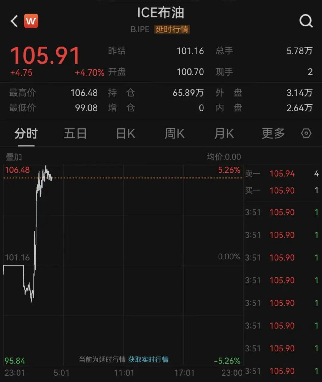 受上述言论影响,全球市场剧烈变动,国际油价突然飙升,布油一度从下跌转为涨超 5%,WTI 原油涨超 4%,截至发稿,布油涨 4.7%,WTI 原油涨 3.75%;金银跳水,伦敦金现一度跌超 2%,伦敦银现一度跌超 4%。