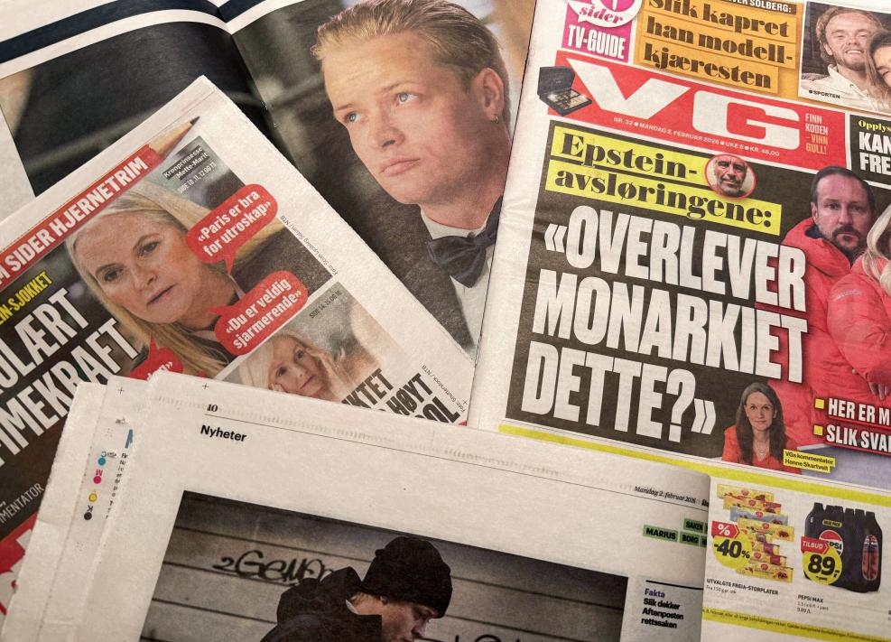 · 当地时间 2026 年 2 月 2 日,挪威报纸对霍伊比案及梅特卷入爱泼斯坦案的报道。(视觉中国)