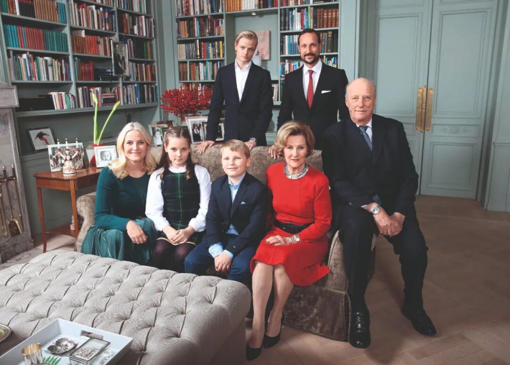 · 当地时间 2015 年 12 月 14 日,挪威王室成员圣诞全家福。(后排左一为霍伊比,前排左一为梅特)。(视觉中国)