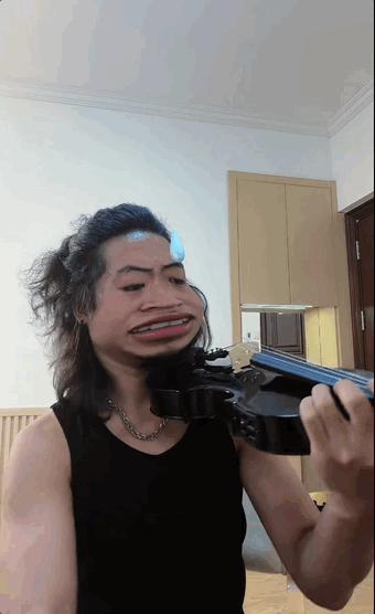 他从评论区呼声最高的弦乐开始尝试起,从角落里翻出落灰的吉他,从朋友那里借来了古筝,在二手平台上收了个便宜的小提琴,从体育生转型 " 邪修 " 音乐生。