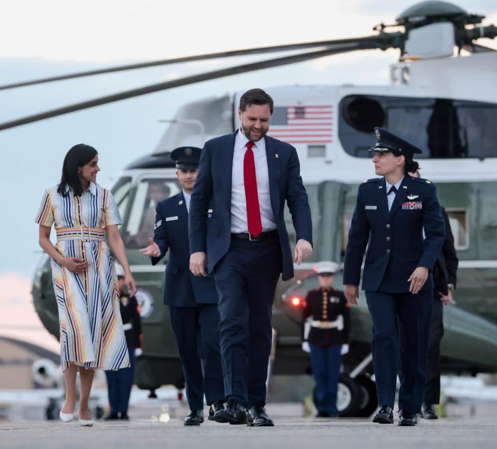 · 准备动身前往匈牙利的万斯(中)。(盖蒂图片社)