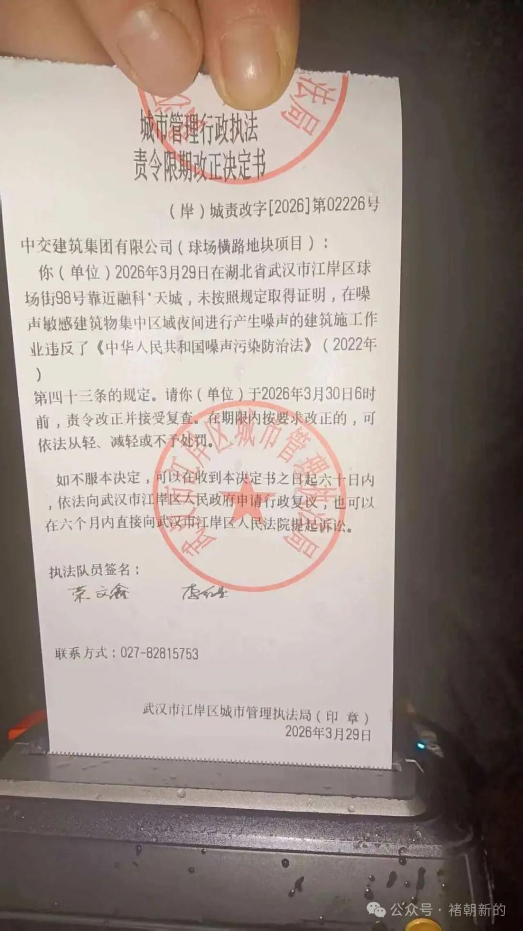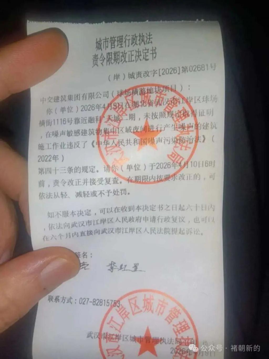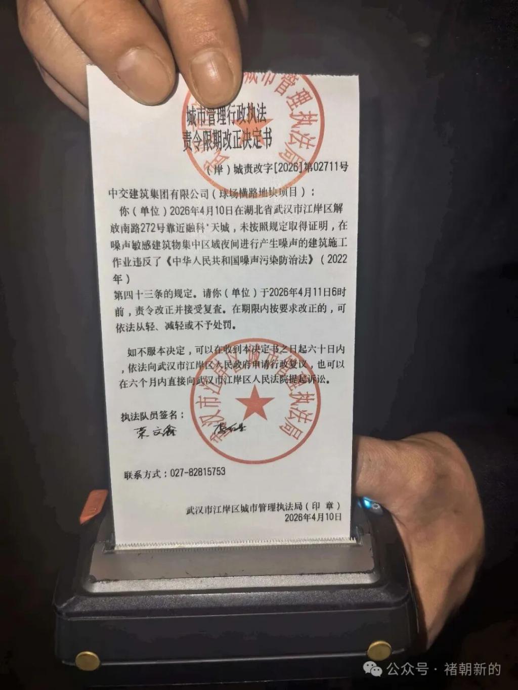 事情是这样的,武汉市民相先生所在的小区长期深夜遭受附近工地噪音扰民,离谱的是,当地城管 8 次接到投诉去执法,且每次都向工地下发了执法责令限期改正决定书,施工方却置若罔闻继续深夜扰民,丝毫不把城管执法放在眼里。