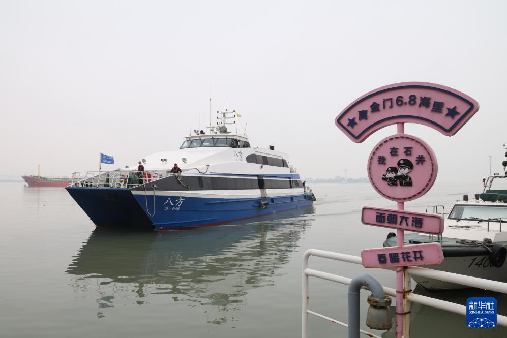 4 月 3 日,泉金 " 小三通 " 客运航线 " 八方 " 轮缓缓驶向福建南安泉金客运码头。图源:新华社
