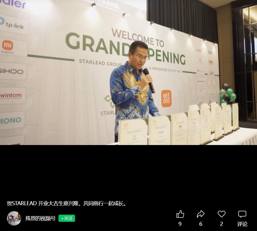 多个印尼相关账号曾在 2025 年 7 月发文,Starlead Group 总部及 Prospace 展厅在 Alam Sutera Kino Tower 开幕,照片最右侧穿蓝色花衣服的疑似为刘立荣。