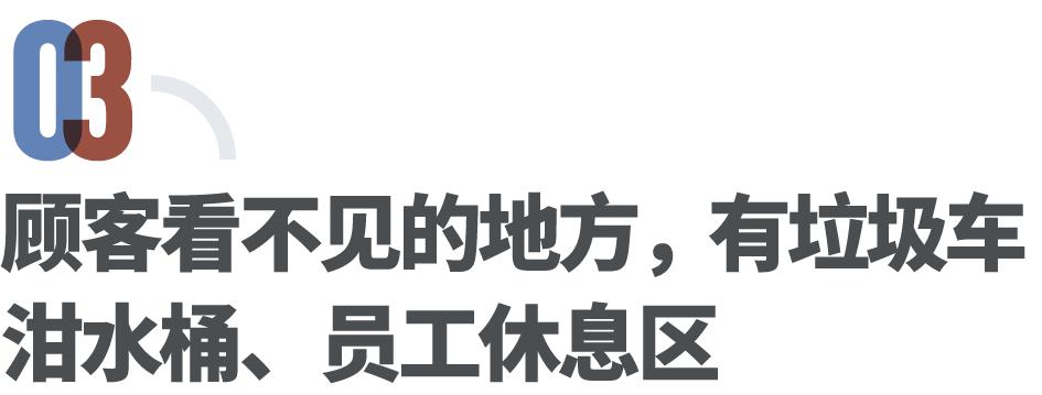 顾客在规整的大方块区域,在那里,他们享用美食和服务,宽敞、整洁、方便,在他们看不到的地方,我们在货梯飞速上下,有人拉着周转小车在长廊快速奔跑,有垃圾车,有泔水桶,有拥挤的员工休息区。