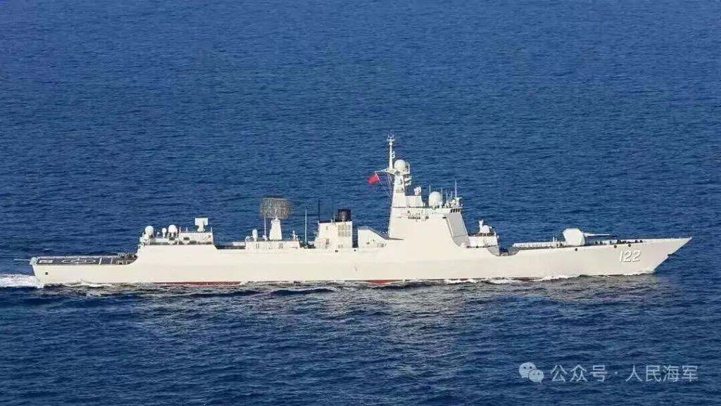 中国海军护航编队唐山舰、大庆舰、太湖舰,正在中东亚丁湾等海域执行例行性护航任务