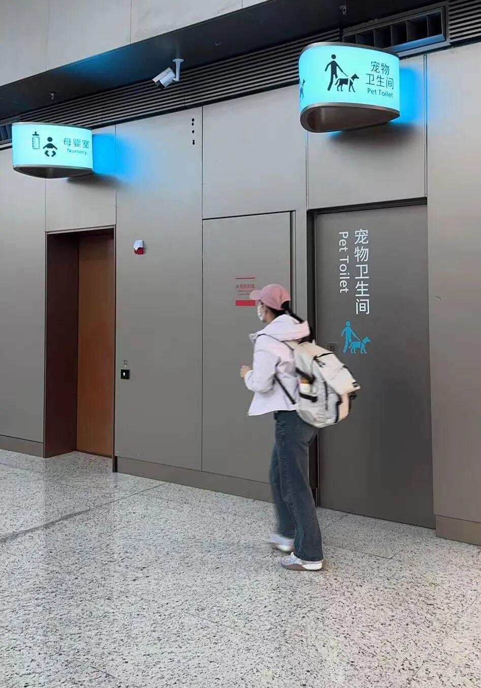 广州白云 T3 航站楼内设置了宠物卫生间。(图 / 受访者供图)