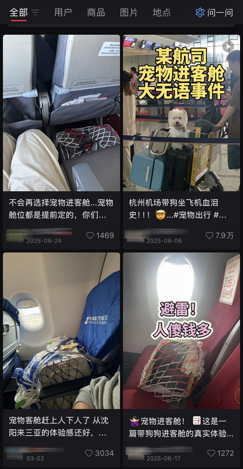 尝试过 " 宠物进客舱 " 服务后,有人点赞,也有人喊 " 避雷 "" 无语 "。(图 / 小红书截屏)
