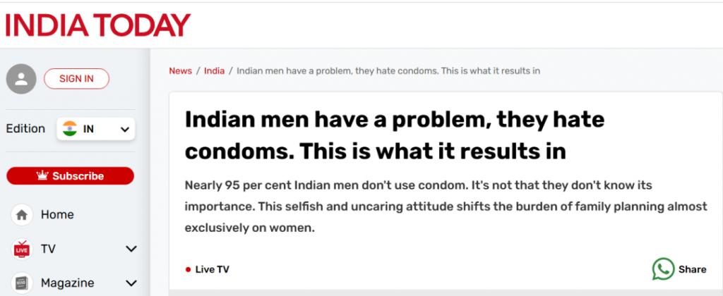 这份调查更是表示:" 近 95% 的印度男人不使用避孕套 "