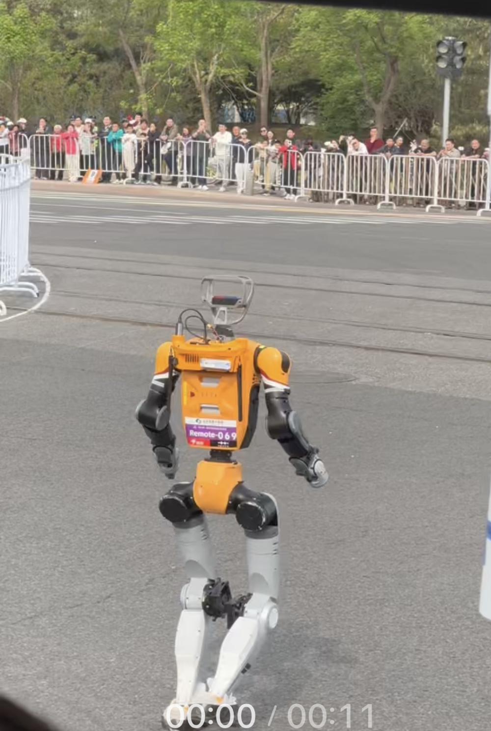 比如,被网友称为 " 最萌小鼻嘎 " 的机器人 " 小派 ",身高只有 75 厘米。去年参赛时,它跑到 100 米就 " 罢工 " 了。到了今年," 小派 " 迈着小碎步完成了 10 公里。对它自己而言,这也是一种进步。
