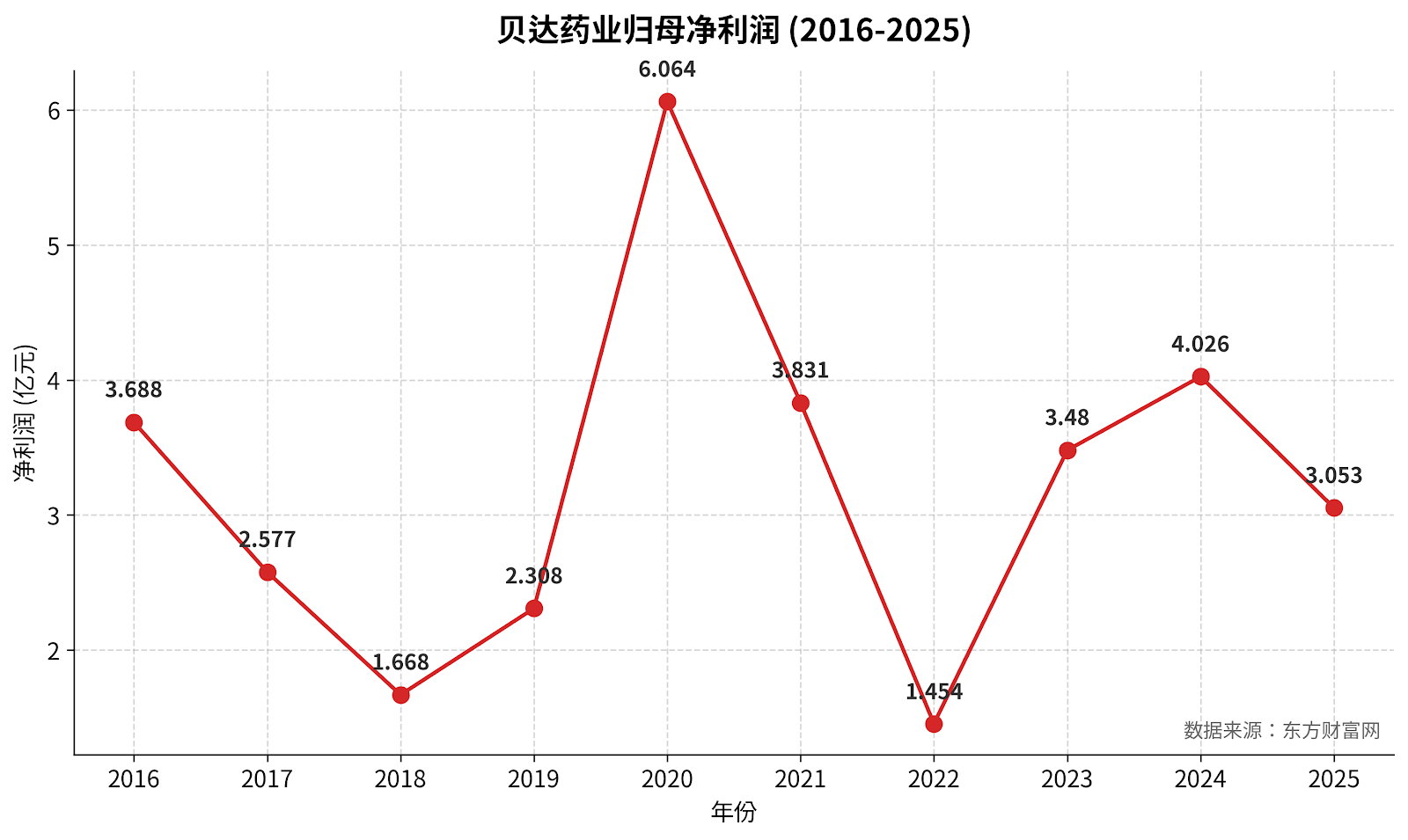 若只看收入,贝达仍在增长,但若把利润表现、产品兑现节奏和行业竞争位置放在一起看,眼下,增长始终没有转化为足够稳定的盈利质量。从2020年归母净利润超6亿元的高点,到近几年在1亿至4亿元徘徊,尽管贝达药业营收盘子在持续扩大,但利润端的承压,让市场很难仅凭收入增长,就重新确认其在创新药企中的位置。