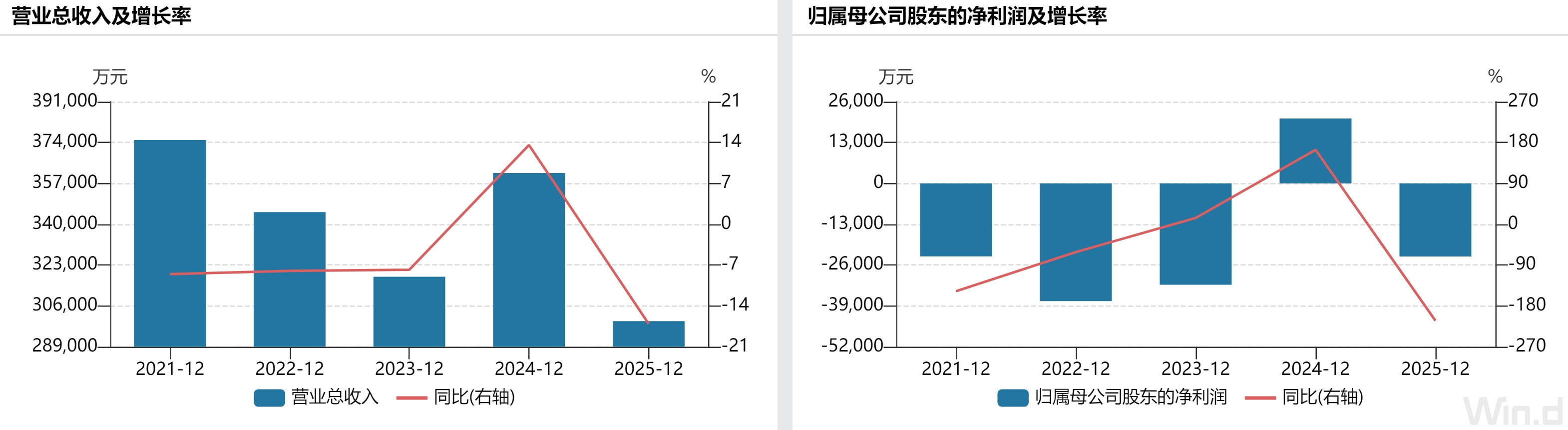 这家公司去年归母净利润同比下跌212.46%,由上年盈利2.07亿元转为净亏损2.33亿元。这一下滑与2025年初机构普遍预期的“业绩向好”形成了鲜明反差。