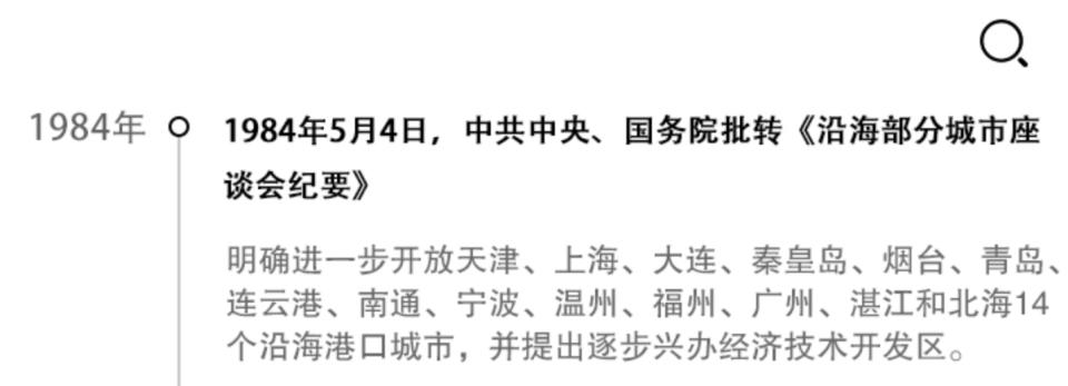 1984 年,国家进一步开放大连、秦皇岛等 14 个沿海港口城市,并在其中设立 国家级经济技术开发区 。