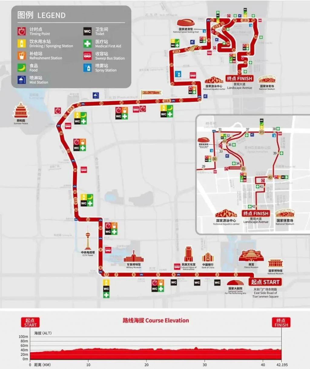 2025 年路线优化后取消了部分狭窄路段和折返点,但木樨地桥等爬坡点仍在。所以北马的难度是后半程桥多、弯多,折返消耗体力。